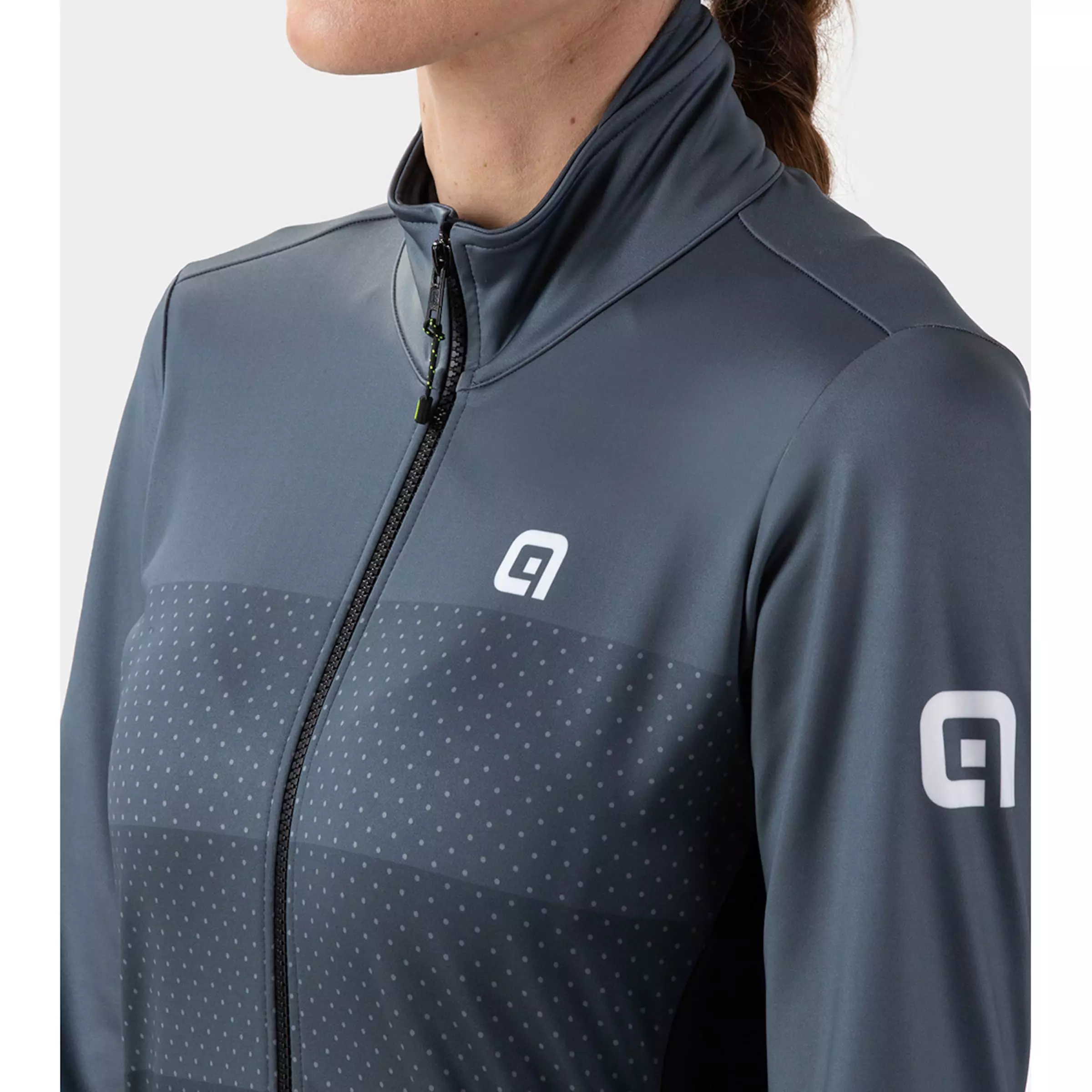 The SOLID LEVEL LADY JACKET WINDTEX women’s softshell cycling jacket by ALÉ offers elegance and warmth. It makes you look cool and protects you from getting cold with its Thermo Fleece and W-Wind 3L Soft material.