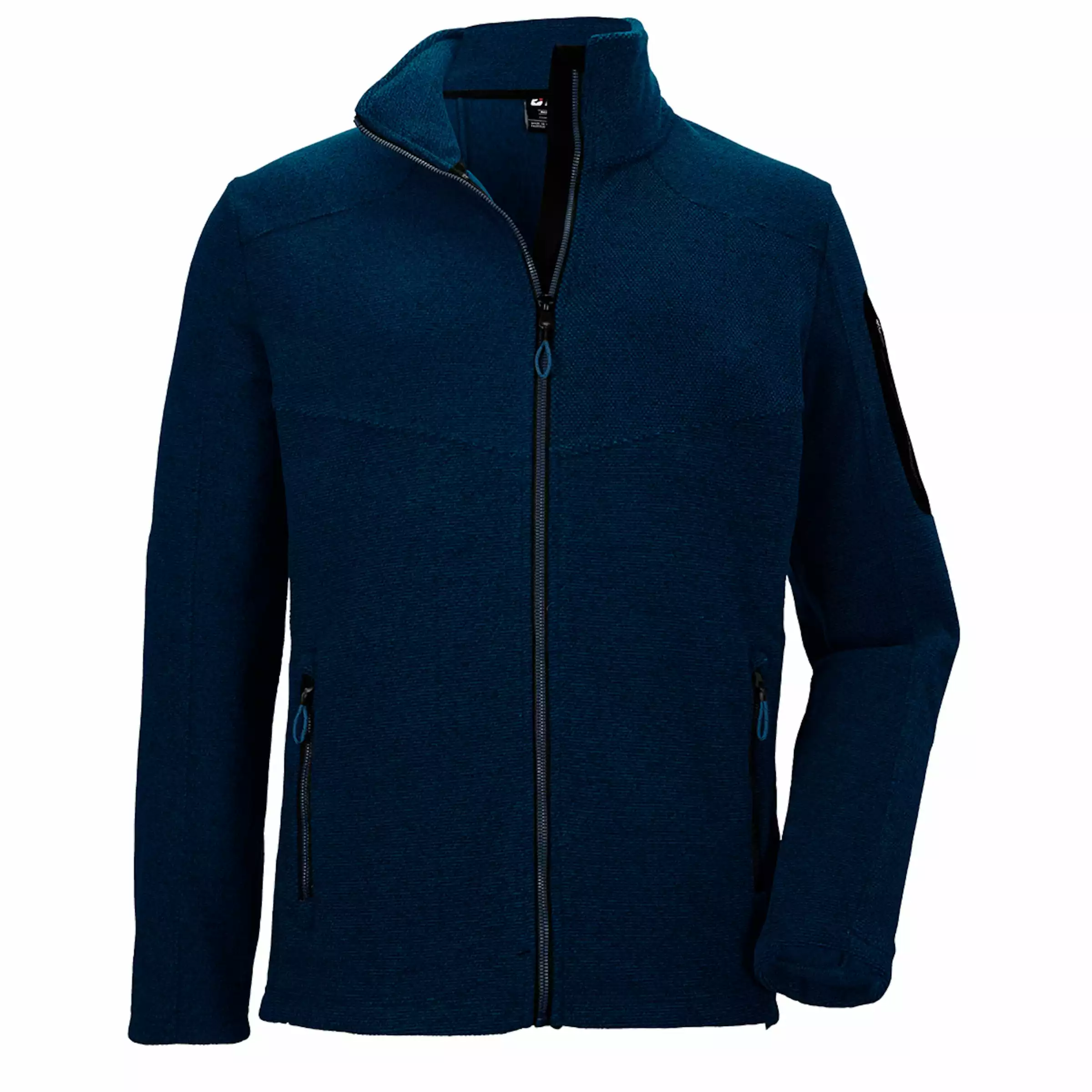 The KOW 28 MN KNTFLC by killtec is a classic, knitted fleece jacket with a high stand-up collar that is both a warming and cosy companion in the cold season. The versatile jacket has two practical zipped side pockets and a zipped sleeve pocket on the upper left arm. A chin guard on the front zip prevents the skin from being pinched.