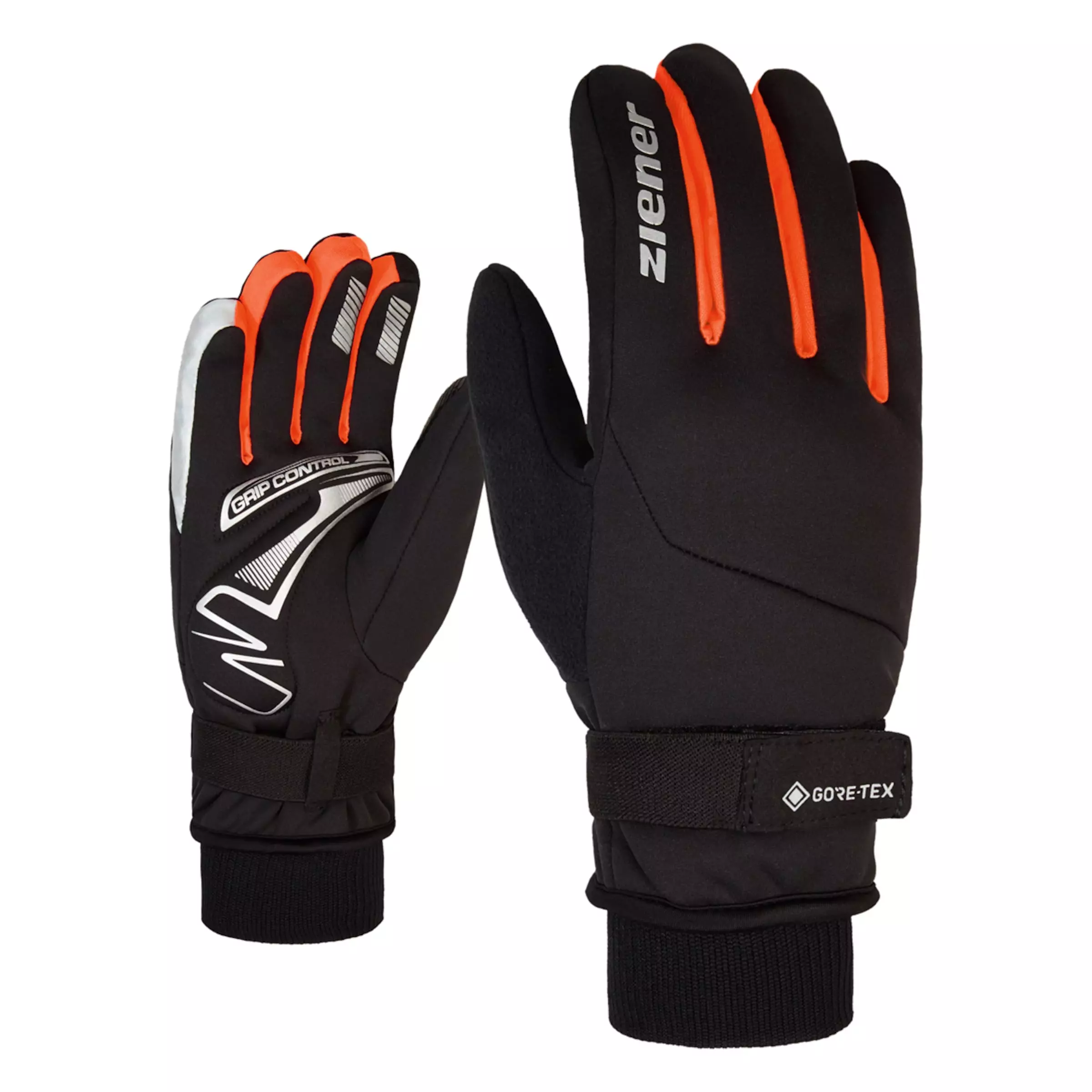 The sporty winter cycling gloves 199 GORE-TEX by ziener made of elastic softshell fabric offer perfect weather protection on cold winter days, thanks to the wind- and waterproof GORE-TEX membrane and a warm fleece lining.